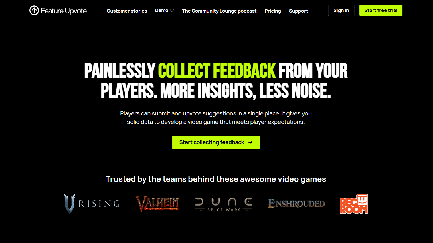 Feature Upvote simplifies feature request collection by allowing you to gather all your customer feedback in one online board. Users can also upvote feedback so that you can identify the most important ones. This software is targeting game developers as their main target audience, so if that's you then this one is worth a closer look.